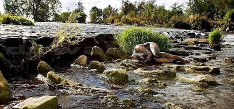 Em meio às pedras, graminhas, água e lodo, ninguém poderia imaginar que existe uma pessoa completamente camuflada à paisagem. O artista posicionou a modelo de foma que ela parecesse uma das inúmeras pedras do cenário. Não é incrível?