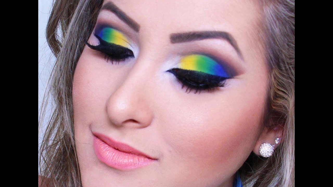 Se não gostar de fazer desenhos no rosto, aposte em uma make comum, mas utilizando um batom e sombra nas cores da bandeira. Fica discreto, bonito e você entra no clima sem precisar passar tinta no rosto. Confira o passo a passo no vídeo abaixo: