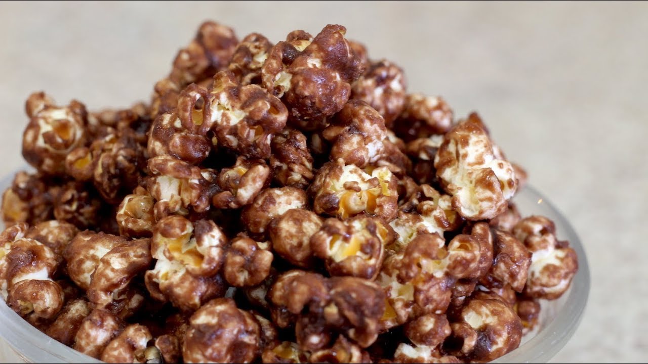 Nessa versão, você primeiro vai estourar a pipoca, depois fazer a calda para colocar por cima da pipoca já estourada. Veja como ensina a Drika Oliveira: