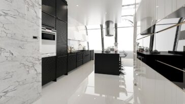 O porcelanato fica muito bonito na casa inteira e pode ser usado em áreas molhadas sem problemas. Apenas tenha o cuidado de escolher um modelo antiderrapante nesse caso. A limpeza é simples, também com água e sabão neutro, e se quiser uma versão menos porosa possível, escolha o esmaltado.