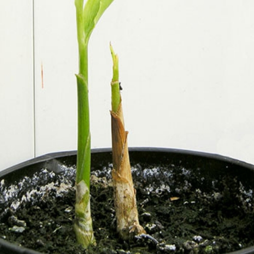 Depois que a terra estiver colocada no vaso, é hora de plantar. Você vai colocar um rizoma por vaso. Se comprou só um, quebre-o em partes menores.