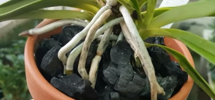 Além disso, ele não deixa que as raízes das orquídeas fiquem muito úmidas e permite uma boa ventilação dentro do vaso. Isso é ótimo para as orquídeas habituadas em árvores, que não ficam com água acumulada nas raízes. Por consequência, o enraizamento da planta que está no carvão é mais rápido.