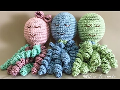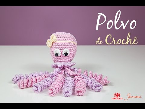 Já se você quiser fazer um polvo em tamanho grande para decorar o quarto até mesmo de adultos, esse vídeo mostra um lindo modelo, com tentáculos bem compridos, e que utiliza uma linda cor mesclada, que também é da linha premium da Círculo. Os pontos são os comuns: ponto baixo, aumento, ponto e diminuição.