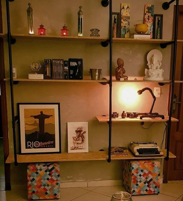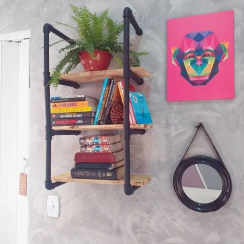 O mais legal é que você pode fazer por conta própria, usando poucos materiais, e nem precisa ter muita prática. Apenas lembre-se que essas prateleiras não suportam o mesmo peso dos modelos feitos só de madeira ou com metal.