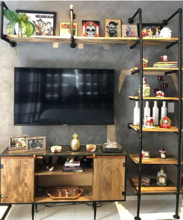 Mobiliar a casa com várias prateleiras feitas de cano de PVC e tábuas é bem fácil, custa barato e a decoração fica cheia de estilo. Hoje em dia, com a decoração industrial em alta, as prateleiras de PVC fazem o maior sucesso.