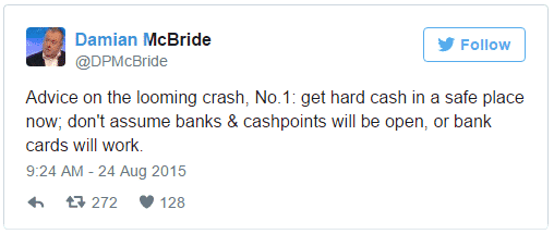 Atualmente ex-assessor do Primeiro Ministro da Inglaterra, Damian Mcbride, tem causado muita agitação na imprensa britânica por suas orientações à população. Ele afirma que a crise que está por vir será 20 vezes mais brutal do que a de 2008.