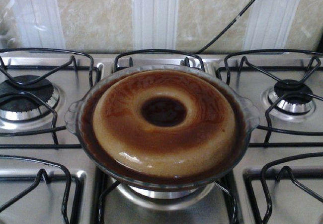 - Unte a forma de pudim com óleo para não grudar e derrame a massa.