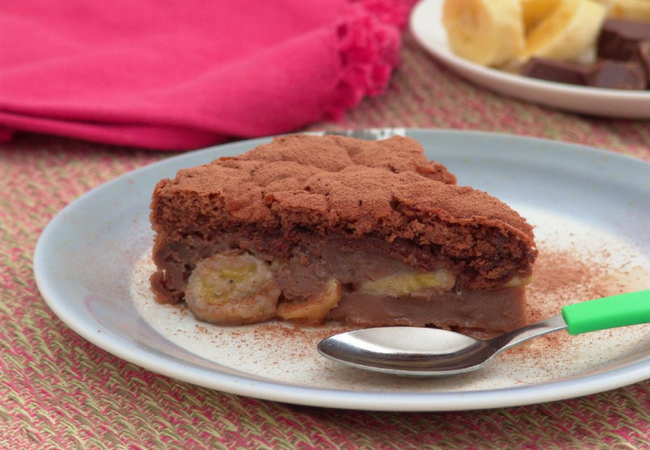 - Despeje sobre a banana e leve ao forno médio, preaquecido, por 30 minutos ou até crescer e dourar levemente.