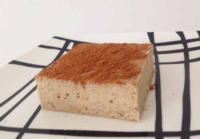 - Coloque numa forma de pudim de silicone e leve ao forno a 220 graus durante cerca de 30 minutos ou até ficar cozido. Deixe esfriar e leve para gelar.