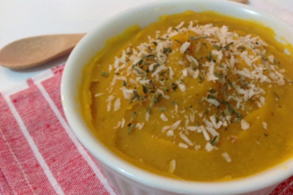 A abóbora japonesa é a estrela dessa receita. Basta corta-lá em cubos, cozinhá-la e amassar com um garfo. Se preferir, pode adicionar outros ingredientes, como catupiry e pedacinhos de bacon.