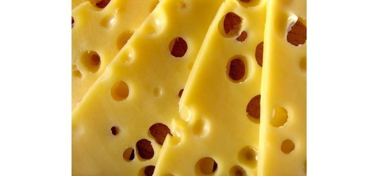 Tem também as olhaduras que são produzidas no processo de fermentação do queijo por bactérias propriônicas, que são aqueles furos maiores, comuns nos queijos tipo emmental e gruyère.