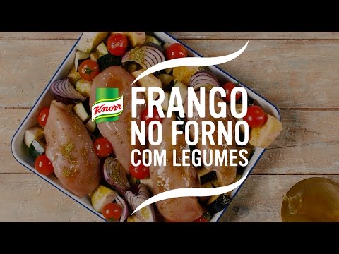 Outra maneira prática e deliciosa de preparar sua receita de frango assado é comprando peitos de frango, temperando com tempero pronto completo para frango e colocando-os em um refratário junto com legumes cortados em pedaços. Nessa receita a sugestão é usar cebola roxa, batatas inglesas ou doces, berinjela e abobrinha. Veja como é fácil montar o prato: