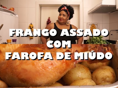 Se você queria ir na padaria para comprar o frango do almoço, mas não vai dar ou está fechado, não faz mal. Compre um frango limpo inteiro e faça a sua versão caseira completa, com direito à farofa e batatas assadas junto com o frango no forno. É uma refeição completa, só precisa de uma saladinha verde para ficar perfeito. Confira os temperos sugeridos no vídeo: