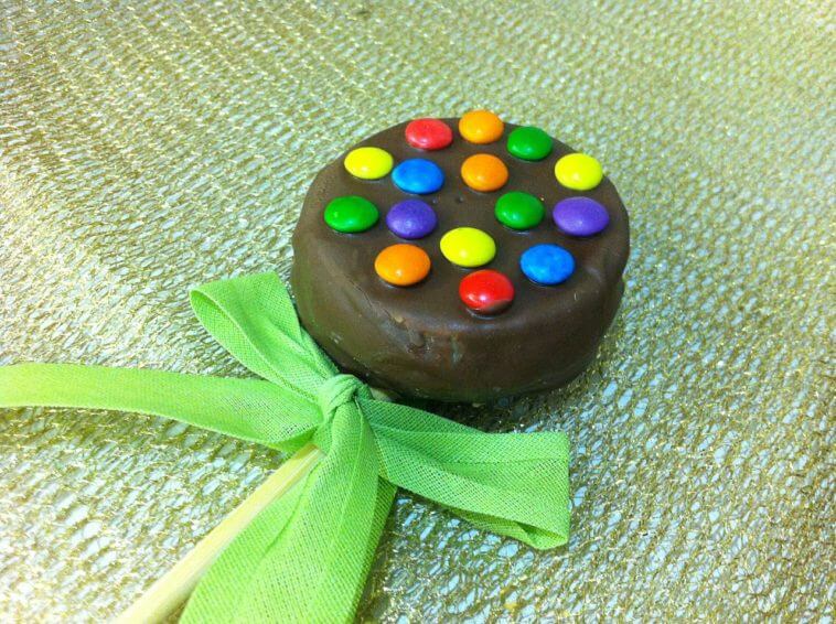 Esse doce é um falso alfajor que pode ser degustado de uma maneira prática, porque está no palito.