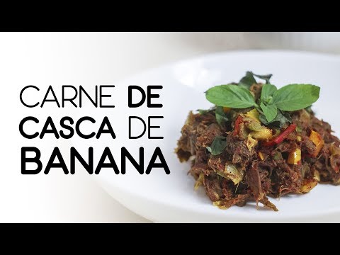 Essa é uma receita vegana bem popular. A carne louca é feita com casca de banana que fica com aparência de carne desfiada ao molho, tipo carne de panela bem soltinha.