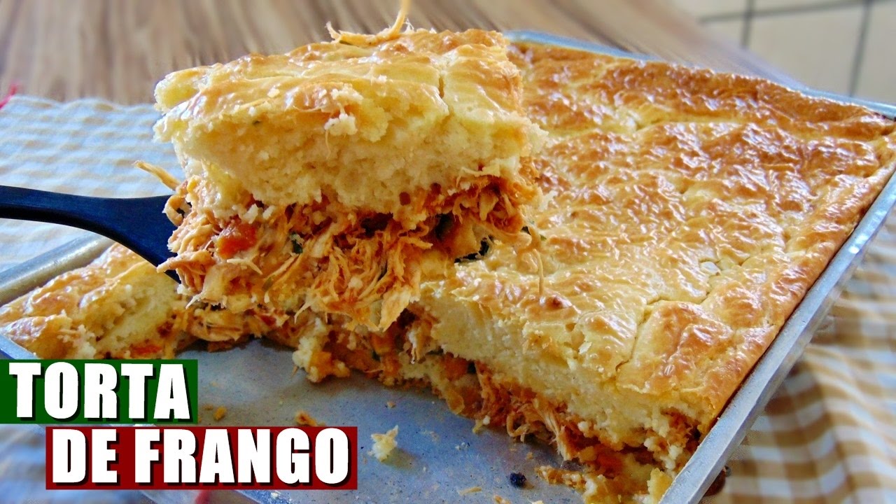 Almoço, lanche ou jantar, essa torta vai sempre bem. Você faz uma massa simples no liquidificador, depois monta na forma com o recheio e leva ao forno. A massa fica bem fofinha. Leva ovo, óleo, leite, sal, trigo, amido de milho e fermento. Veja como fazer nesse vídeo do Menino Prendado: