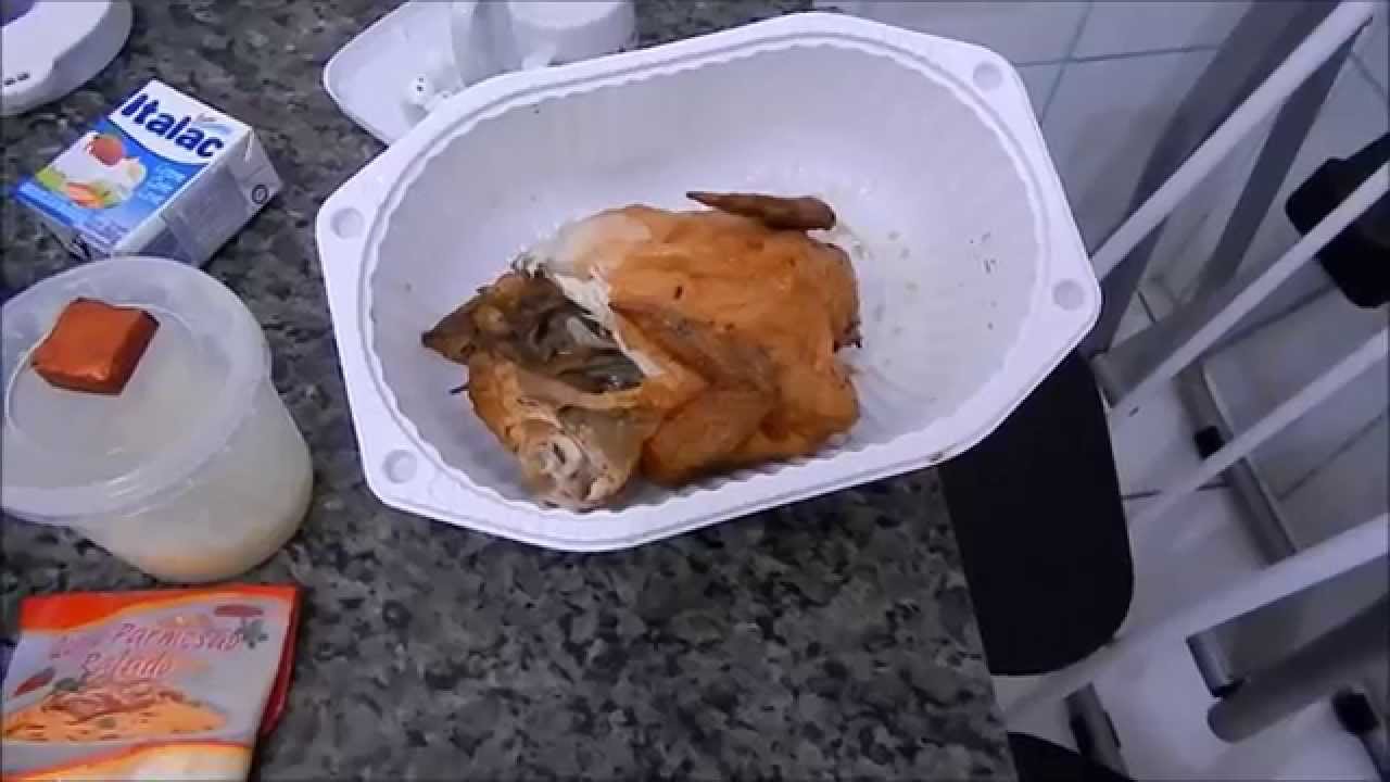 Frango assado sem pele e desfiado: quantidade de 2 peitos;