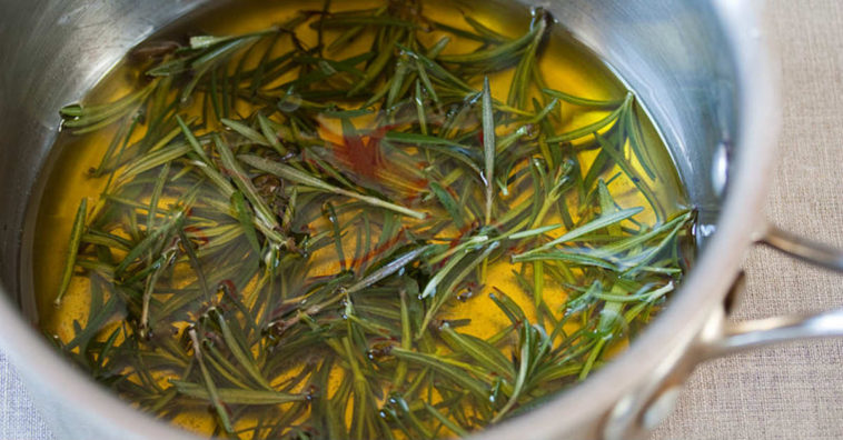 - Coloque a água para ferver e assim que atingir esse ponto, acrescente o vinagre e o alecrim;