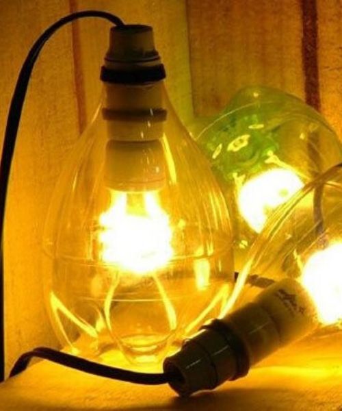 4. Uma luminária com as bases das garrafas que ficam parecidas com flores