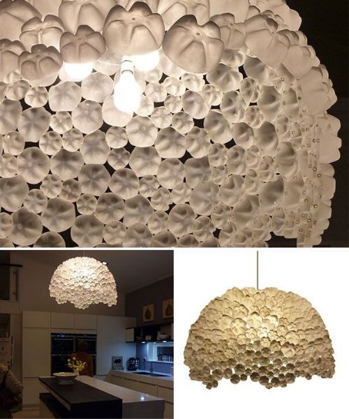 4. Uma luminária com as bases das garrafas que ficam parecidas com flores