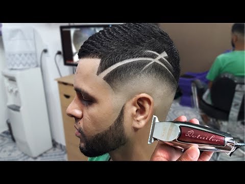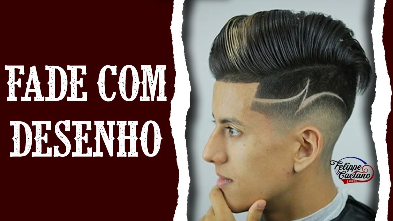 Já se quiser uma versão mais estilizada, além do corte degradê também pode fazer um risco mais longo, com curvas e pontas, formando algum desenho. Veja esse tutorial do corte completo: