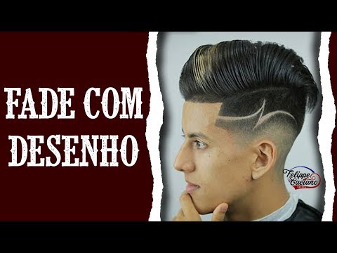 Já se quiser uma versão mais estilizada, além do corte degradê também pode fazer um risco mais longo, com curvas e pontas, formando algum desenho. Veja esse tutorial do corte completo: