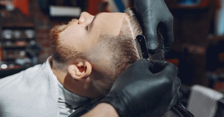 Para fazer o tal risco no cabelo é preciso usar máquina de cortar cabelo e também navalha de babeiro.