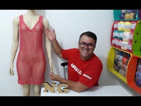 Se quiser fazer uma peça com pontos mais simples, esse modelo de vestidinho regata com gola V é a peça ideal.