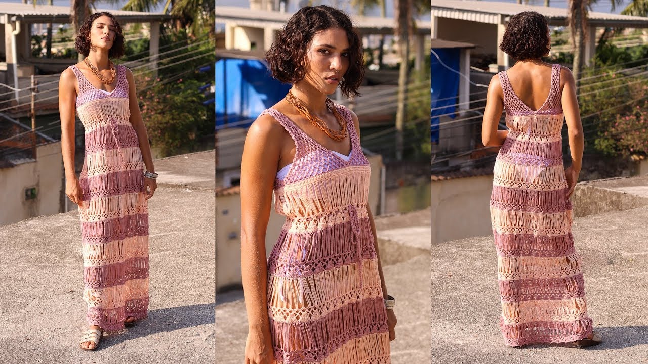 Se você adora vestidos longos, esse é um modelo lindo, que tem um forro para usar mesmo se não estiver na praia ou na piscina.