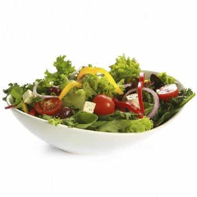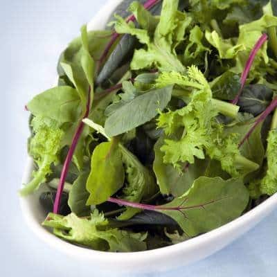 - Folhas verdes (alface americana, rúcula, alface roxa…): 100 g;