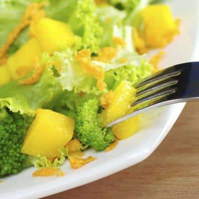 Além de ter muita cor, essa salada é saborosa e junta uma diversidade de ingredientes, como mel, manga e melão.