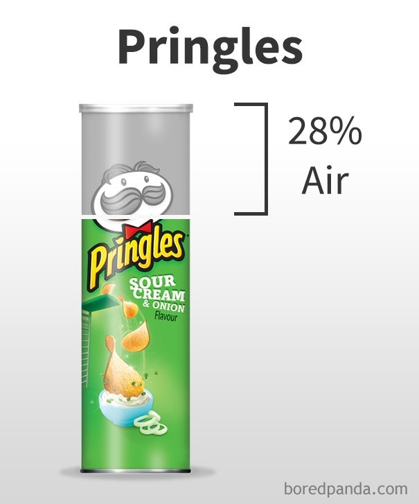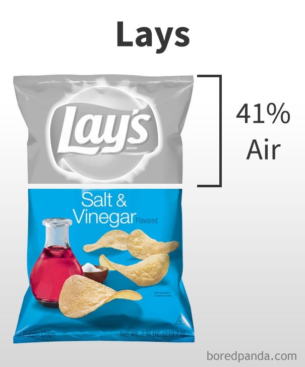 Em 2012, depois de muitas críticas na internet sobre a proporção de ar e batatas em suas embalagens, a marca Pepsico, que produz os salgadinhos Elma Chips, criou um infográfico para explicar por que as batatas Ruffles têm tanto ar no pacote.