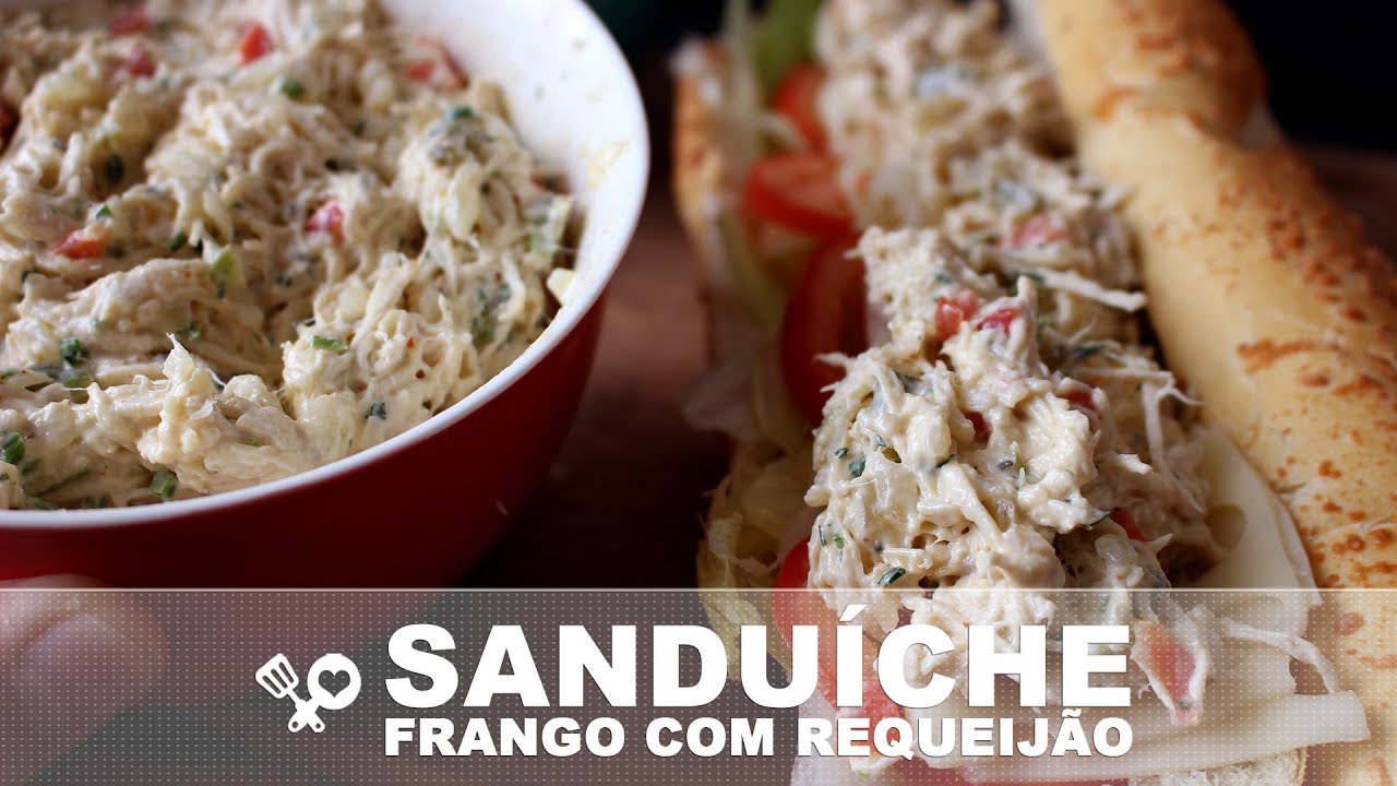 Esse sanduíche é bem simples, com duas fatias de pão, o frango cremoso e folhas de alface. Veja o que vai precisar para a maionese de frango e para uma receita que rende de 4 a 6 sanduíches.