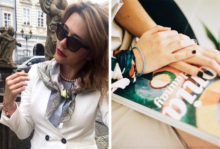Ter um lenço de seda é estar pronta para dar aquele complemento ao look de qualquer estilo. Ele pode ser usado no pescoço ou no pulso, mais folgadinho ou justo. Cuidado para não exagerar nos acessórios quando for usá-lo.