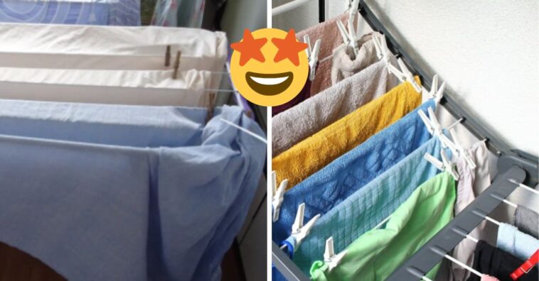 “Sempre me disseram que se o chão estiver seco, não importa a estação, suas roupas vão secar também, só demora um pouco mais. Um pequeno truque que aprendi quando chega o inverno é pegar seu varal e um lençol sobressalente e enrolá-lo no varal. Coloque-o no radiador ou em um ventilador aquecido e ele retém o calor e seca as roupas mais rapidamente.”