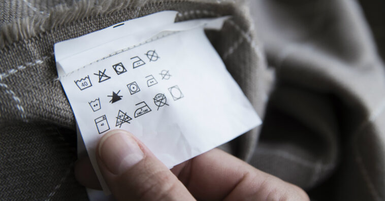 Os símbolos nas etiquetas informam sobre o modo de lavagem mais adequado para cada peça, de acordo com o tipo de tecido, também como deve ser feita a limpeza a seco, a secagem, como passar a ferro e sobre branqueamento. Veja a seguir.