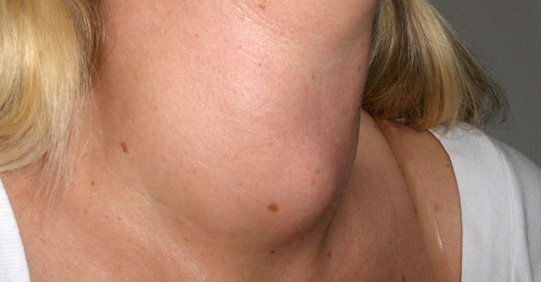 Esse é um dos sintomas do hipotireoidismo mais característico, pois ele provoca um enorme inchaço na região do pescoço. Esse inchaço é gerado pela tentativa do cérebro de produzir TSH, hormônio que estimula a tireoide (para compensar).