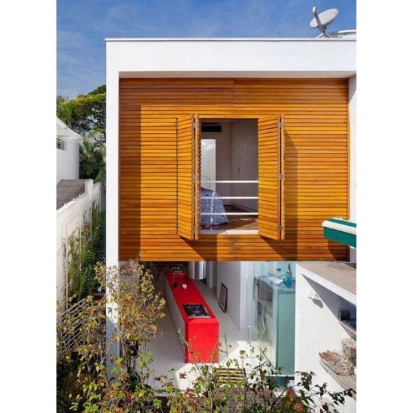 1. Cozinha aberta embaixo, quarto em cima e essa maravilhosa fachada de madeira