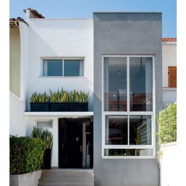 12. Os brises de correr no janelão da parte superior deixam a fachada moderna e trazem conforto térmico