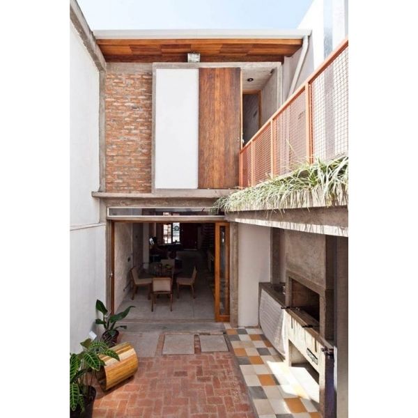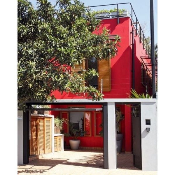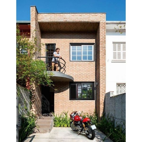 15. Madeira, tijolinhos, metal e um vermelho lindo