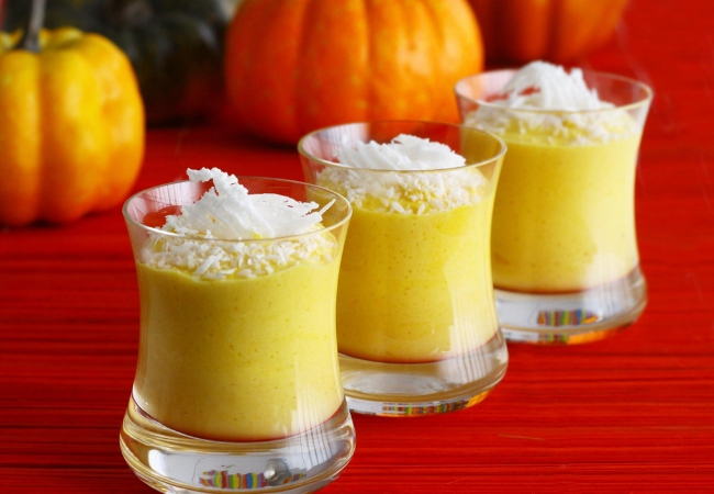 Entre as sobremesas com abóbora não poderia faltar um sorvete, que é irresistível em qualquer época do ano. Como a abóbora combina muito bem com o coco, essa receita leva os dois ingredientes, junto com creme de leite, açúcar, leite de coco e gelatina. Aliás, a abóbora não é usada fresca, e sim na forma de doce ou compota, então é ainda mais prático de fazer.