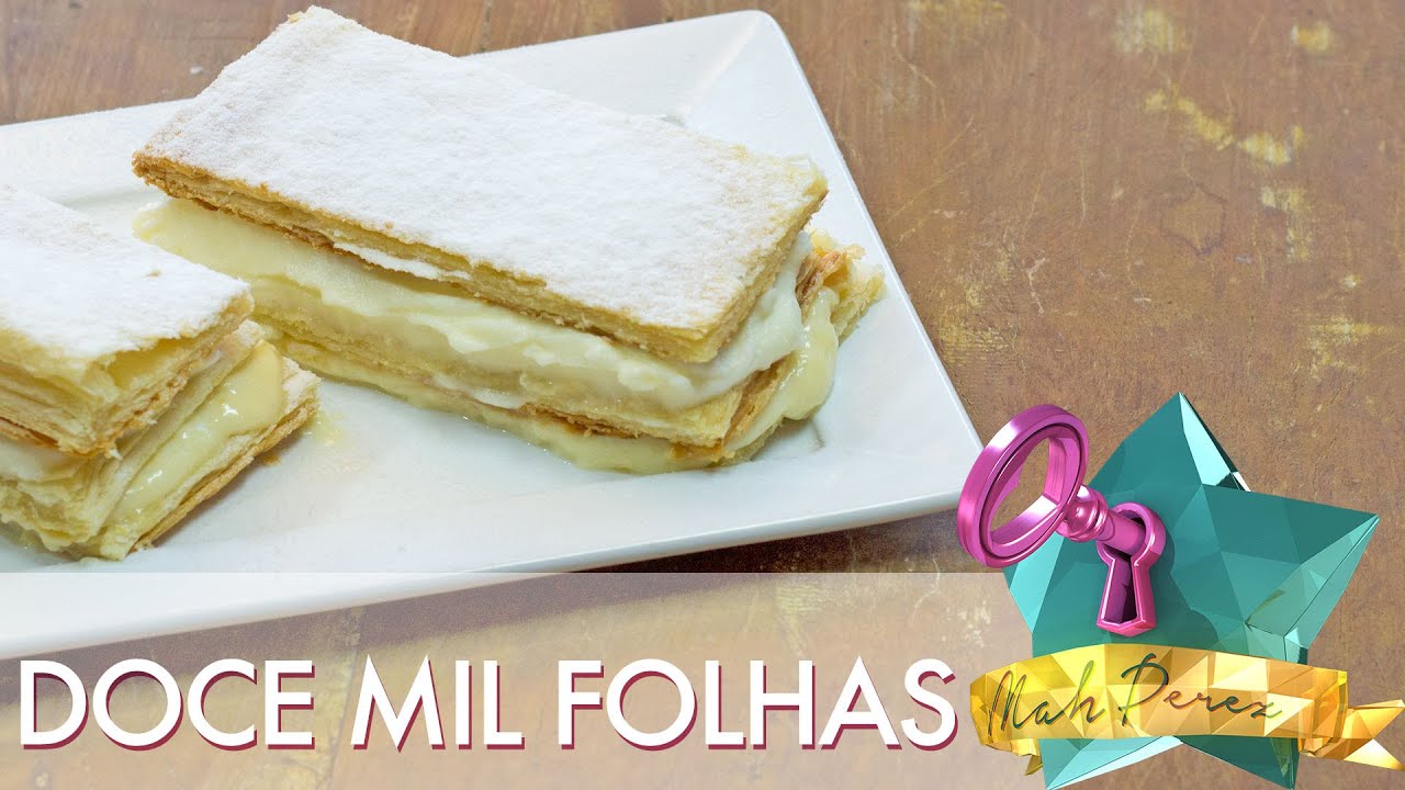Por ser um doce chamado de mil folhas, claro que só poderia usar a massa folhada, que tem diversas folhas bem sequinhas e amanteigadas misturadas com camadas de creme de pasteleiro.