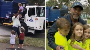 Trigêmeos reencontram amigo motorista do caminhão de lixo