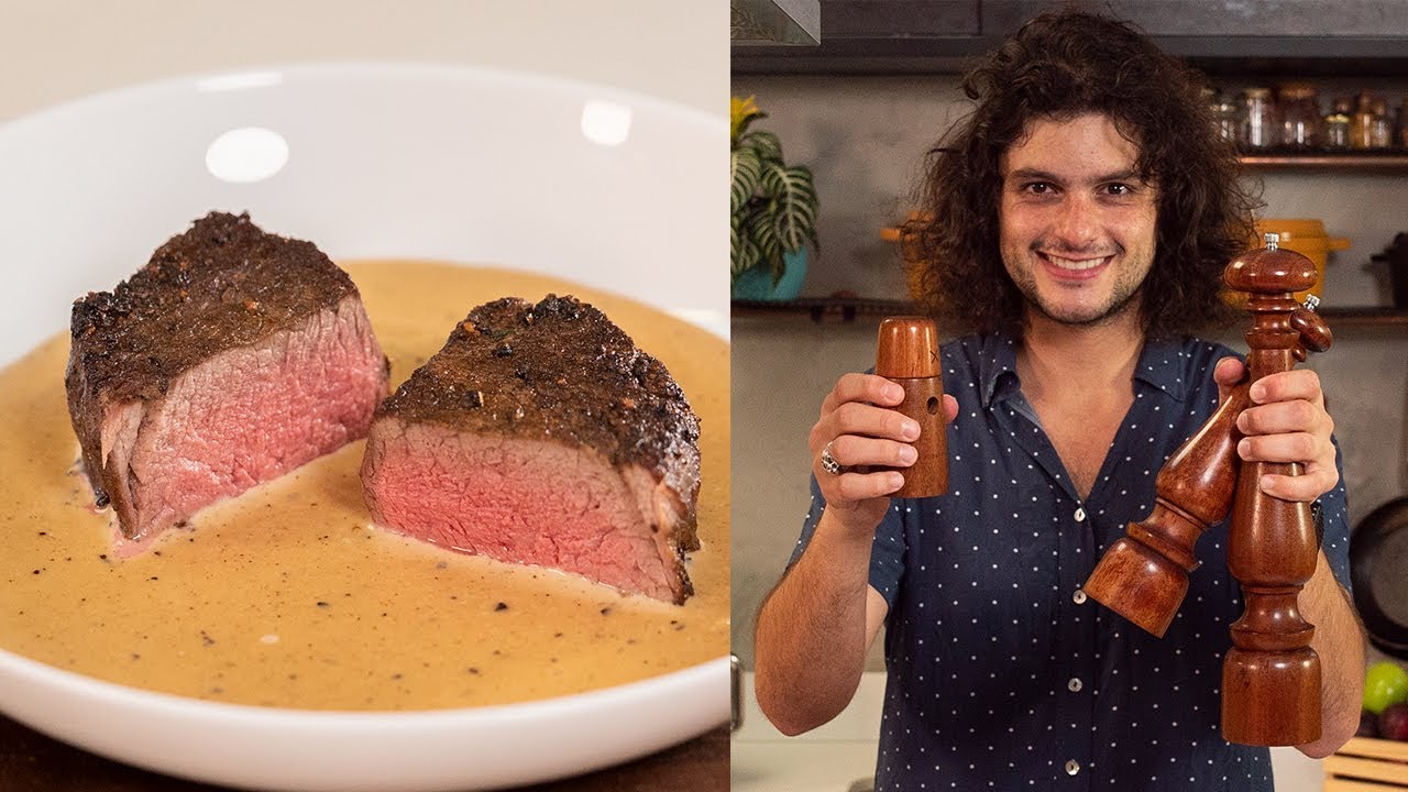 Com a mesma base de crosta de pimenta e molho de pimenta no filé mignon, veja três maneiras diferentes de preparar esse prato.