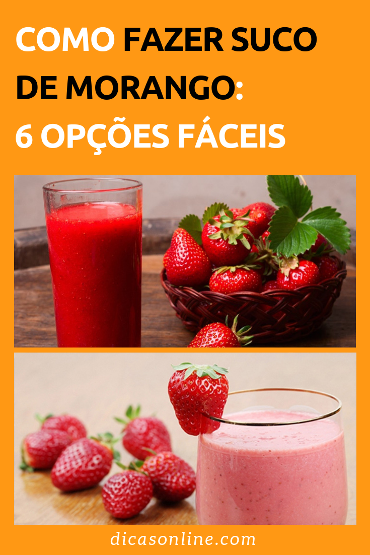 Também é uma ótima opção para inserir da dieta, já que tem poucas calorias. Em 100 gramas de morango tem apenas 33 calorias. Claro que, nesse caso, quando for tomar o suco deve considerar a versão sem açúcar e os demais ingredientes que adicionar.
