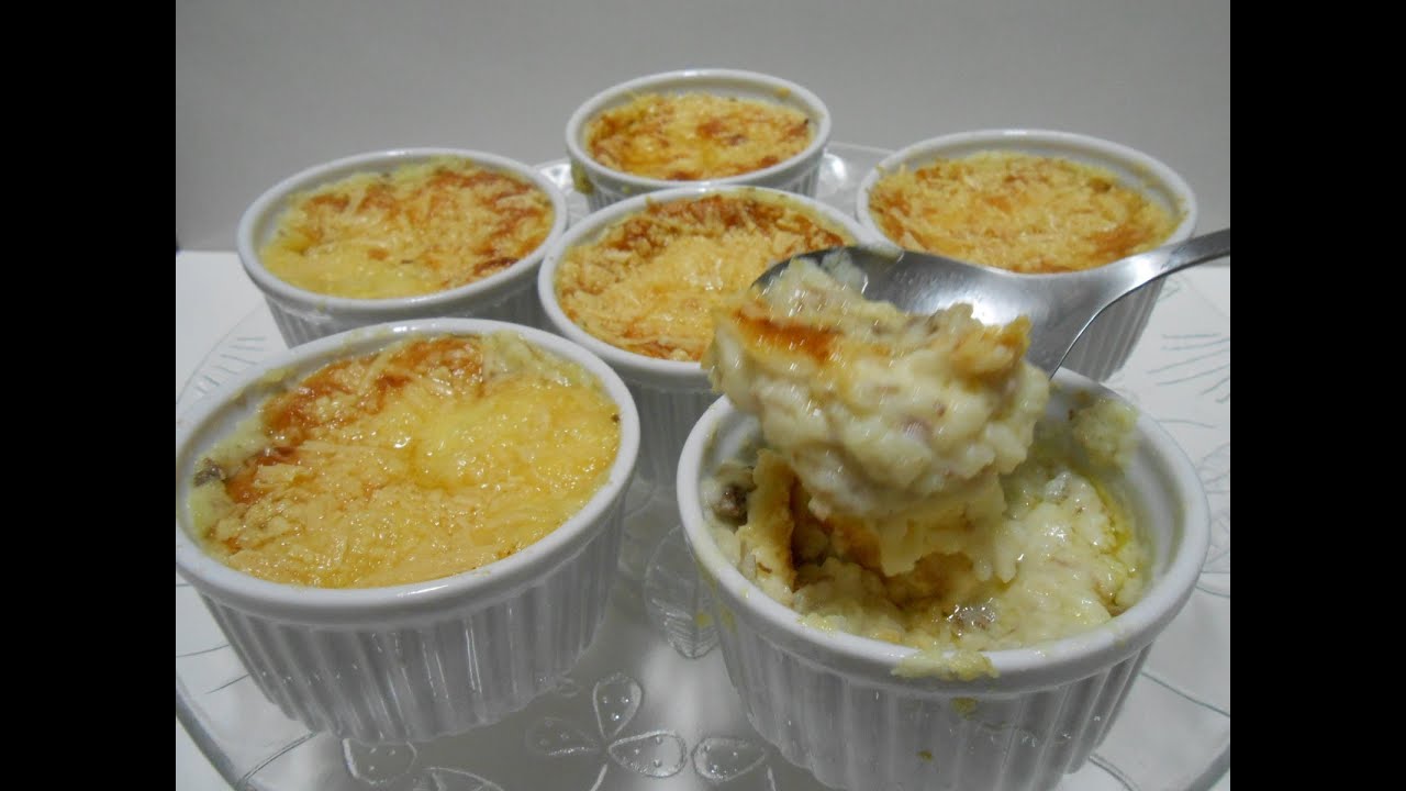 - Depois coloque numa travessa de vidro untada e enfarinhada. Leve ao forno preaquecido por cerca de 25 minutos. Sirva quente.