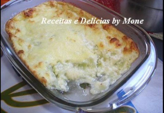 - Depois coloque numa travessa de vidro untada e enfarinhada. Leve ao forno preaquecido por cerca de 25 minutos. Sirva quente.