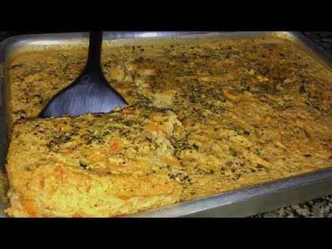 - Unte um pirex com manteiga, acrescente a mistura com legumes e leve para assar em forno por 30 minutos a 180 graus. É necessário preaquecer o forno.