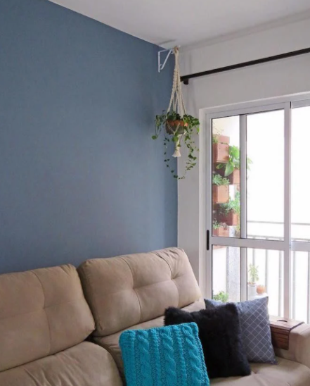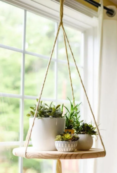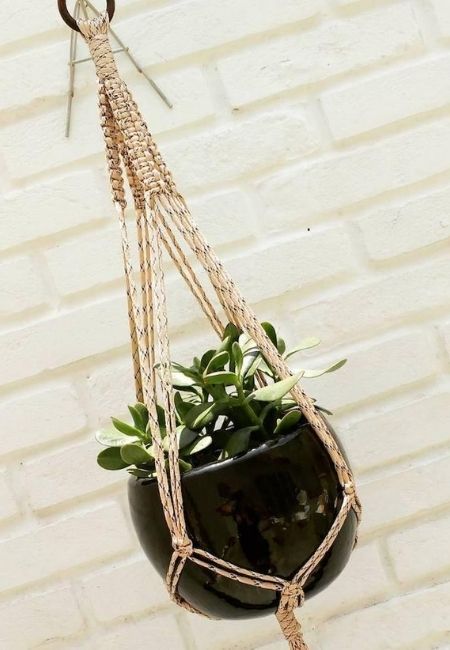 Você também pode comprar só a parte do suporte que fica fixada na parede, seja o gancho ou a estrutura em forma triangular, e fazer o seu suporte pendente em macramê ou tricô, por exemplo, deixando a decoração ainda mais personalizada.