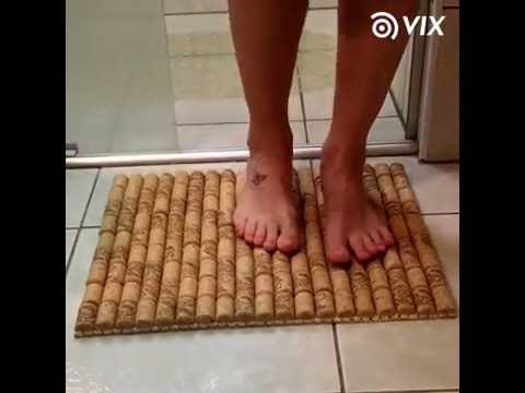 As rolhas são feitas de cortiça, um ótimo material para fazer peças de artesanato, inclusive tapetes. Esses tapetes podem ser usados para banheiro, na porta de entrada, cozinha e área de festas porque é mais resistente às pisadas. Além do mais, fica bem bonito com um visual rústico.
